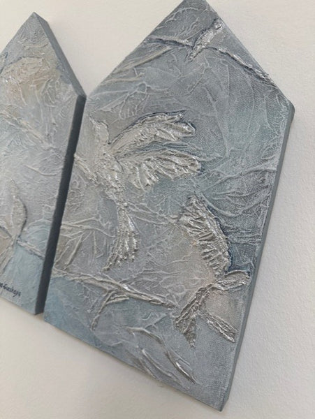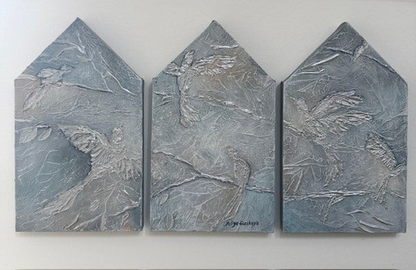 - Sæt bestående af tre malerier der hver måler 18(b)x29(h)cm.