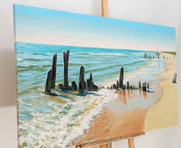 Malet på kanterne, og ser perfekt ud uden ramme omkring.